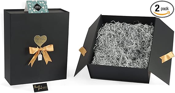 Gift Boxes with Lids 2 Pack, 16.5"x14.5"x5.5" Extra Large Black Gift Box with Ribbon Card Fancy Gift Wrap Boxes for Wrapping Presents Festival Anniversary, Birthday Weddings,Groomsmen Proposal Box
